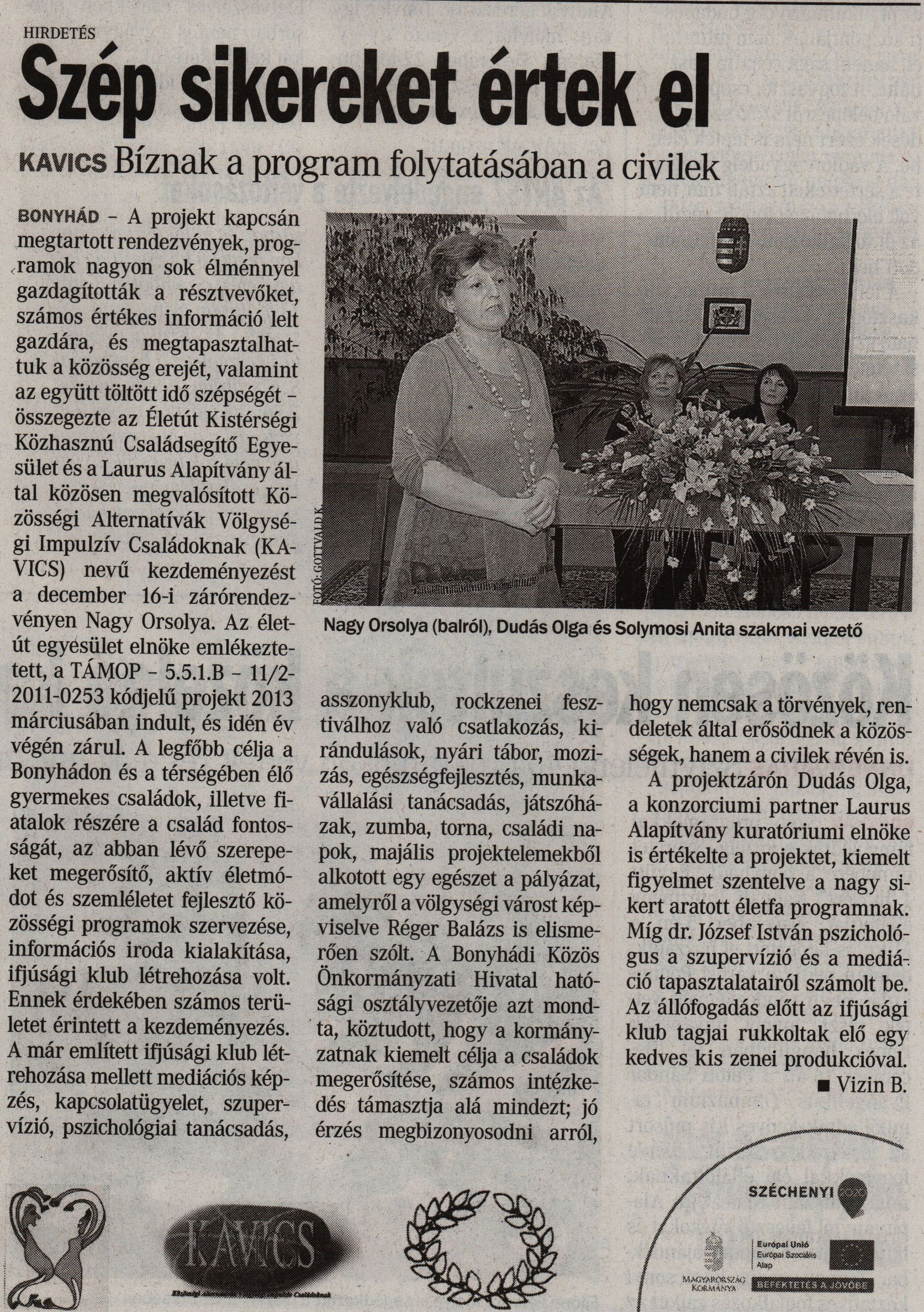 Az ifjakkal cseperednek a fák (forrás: Tolnai Népújság, 2014. november 11.)